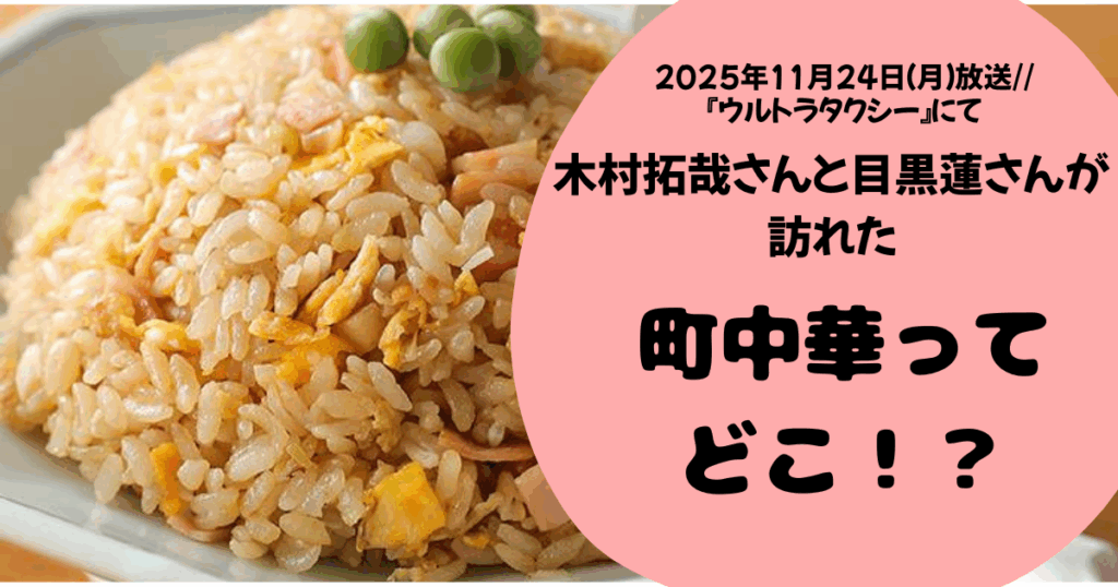 【ウルトラタクシー】キムタクと目黒連が訪れた町中華はどこ!?2025年11月24日(月)放送!