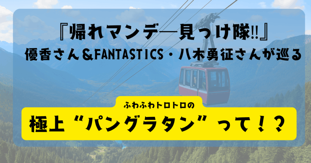 【帰れマンデー】『群馬県・谷川岳』ふわふわとろとろの極上パングラタンって!? 優香さん&FANTASTICS・八木勇征さんが巡る