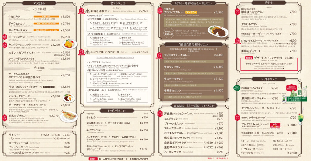 - 「カツカレー発祥の店」として知られていて、昭和23年ごろ、プロ野球選手・千葉茂氏が「カレーにとんかつを載せてくれ」と注文したのが始まり、という噂がある!